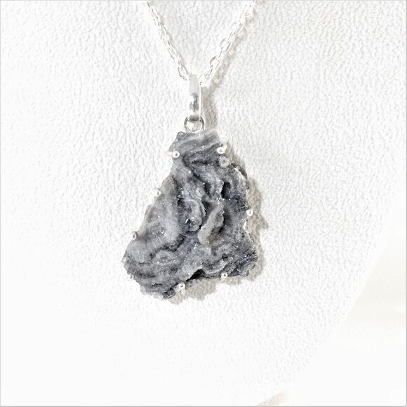 - The sterling silver druzy statement pendant measures 2” long from the top of the loop and 1-1/2” at its widest.