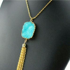 Druzy Pendant Necklace with tassel