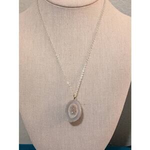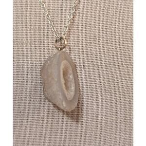 Druzy Quartz Geod Pendant on Silver Tone 18" Chain Necklace. Pre-owned, this necklace is in excellent condition.