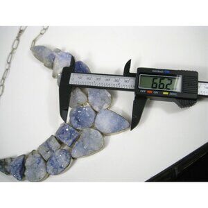 Druzy Quartz Sterling Silver 925 Statement Necklace Adjustable Chain Bib 23 inch