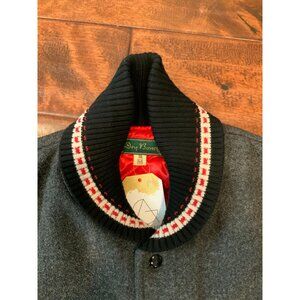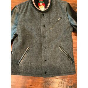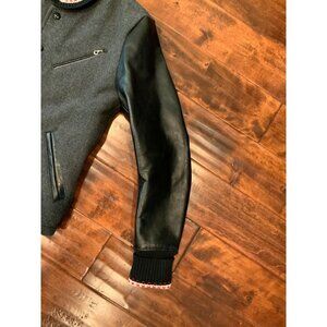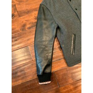 Dry Bones Gray Wool Varsity Jacket w/ Black Leather Sleeves, Size M