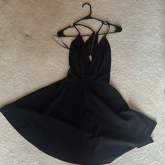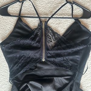 Lace/open back with halter straps.