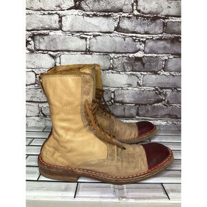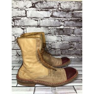 Selling Dry-ShoD Italian Handmade Tan Leather Red Lace Up Combat Boots Men Sz 7M US/40EU