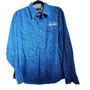 Drysdales Western Shirt Mens XL Paisley Pearl Snaps Jake Clark's Mule Days Blue