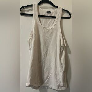This versatile white sleeveless top is perfect for any occasion. Its simple design makes it a wardrobe essential.