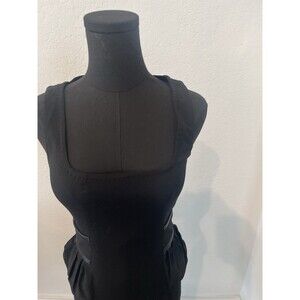 Dsquared2 Black Peplum Leather Trim Wool Mid-length Dress EU Sz 40 US 8 Bodycon