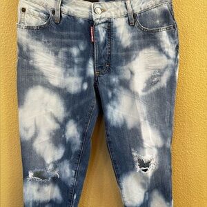 Dsquared2 “Glam Head” Blue Tie Dye Cropped Distressed Jeans Size 42 Or US 6 NWT