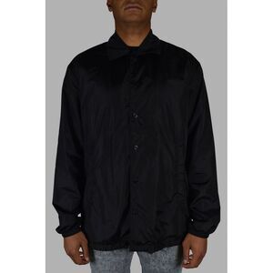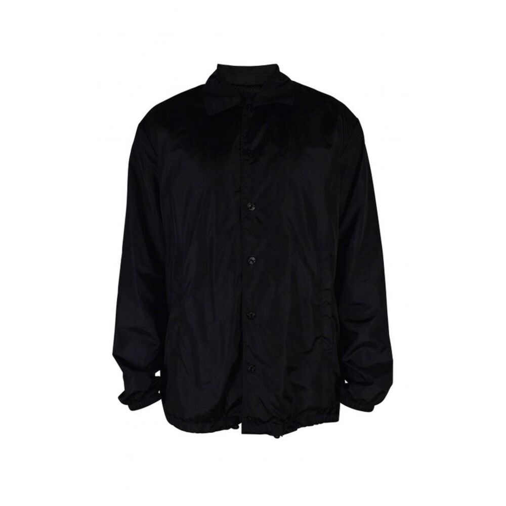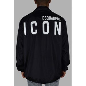 Lightweight black Dsquared2 waterproof jacket.<br />Front closure with buttons.<br />ICON logo print on the back.<br />Long sleeves, elastic cuffs, drawstring.<br />100% Polyester.<br />Made in Italy.