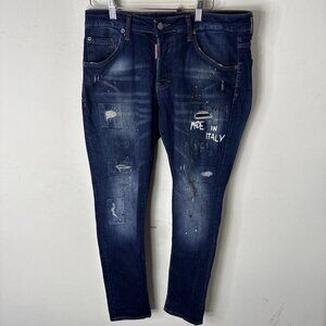 Dsquared2 Slim Stretch Jeans Men’s 32x31 Blue Distressed Paint Splatter Made Italy
