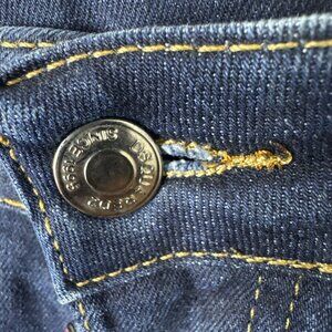 Excellent pre-owned condition. Intentional distressing and paint splatter design from factory. No flaws beyond original design.