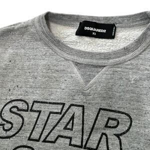 Heather grey Dsquared2 sweatshirt with front “Star 24-7” print and intentional distressing throughout. Features ribbed cuffs, v-insert neckline, and a raw edge vibe for that lived-in designer look. Baggy fit