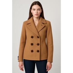Dsquared2 Tan Double-Breasted Wool Pea Coat Made in Italy Size 46 (US 10)