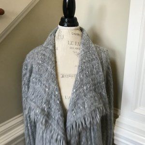 Women's Dtlm REPEAT Cardigan Sweater in a size 38 / Small. Neutral gray color with fringe trim and monochromatic sequins detail. Originally $325. Fast Same Day Shipping.