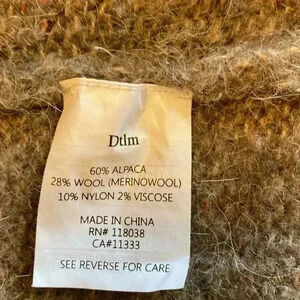 Dtlm Repeat Light Brown Alpaca/Wool Blend Open Front Cardigan Size 38/Small. Fits more like a medium. The Wool has some other color flecks in it as seen in last photo. Great pre owned condition.