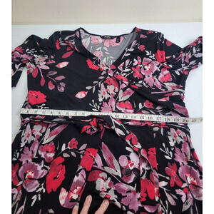 Du Joir Black Red Floral V-Neck 3/4 Sleeve Faux Wrap Maxi Dress Women's Sz XLP