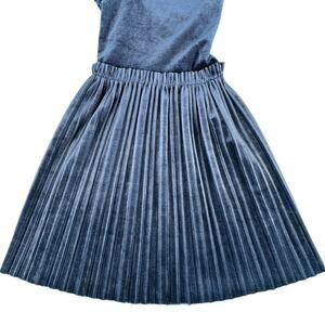 Du Jour Elegant Blue Velvet Pleated Bell Sleeve Tunic Top Size Medium