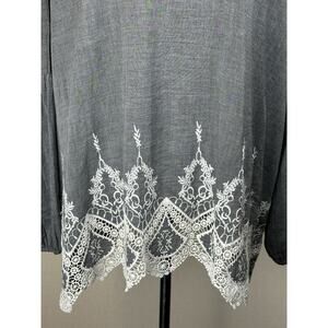 Du Jour Women’s 2XL Gray Peasant Blouse Embroidered Tasseled Cotton
