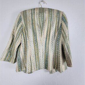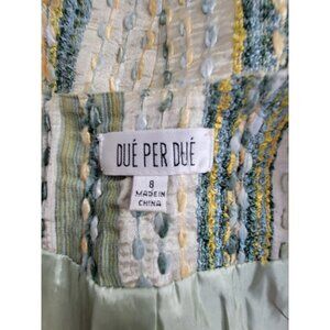 Dué Pér Dué Womens Size 8 Green/Yellow Open Front Career Textured Jacket Lined