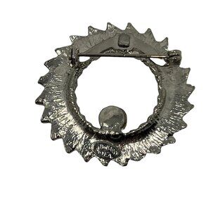 DuBarry FA Brooch Round Wreath Textured Silver Tone Faux Pearl Pin