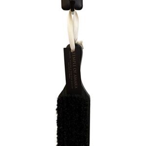 When it comes to taking care of your clothes, brushing is an indispensable act of love dedicated to your fine linens. The simple gesture not only removes dirt, dust and pollen and lint but also prevents pilling. This Dual Action Double Sided Clothing and Cashmere Brush features a cool and durable, comfortably curved, polished hardwood handle which house the soft and firm 100% natural Premium Quality boar hair bristles. The Soft hair bristled side is designed especially for use on cashmere and other fine wools, but it works on all fabrics. The firm bristles are for use on durably, heavy fabrics. A satin strap is included for easy hanging for display or storage. Incorporate brushing into your daily routine as a way to extend the life of your favorite clothes and remove lint and other fine debris. A great alternative to single use sticky lint rollers on fine fibers. This is a fine brush for men and women's clothing. Using a good clothes brush and learning to care for your fine linens will save you a trip and money spent at the dry cleaner. It is also excellent for use on furniture, velvet, upholstery, wool suits, suede, cashmere, hats and more.
