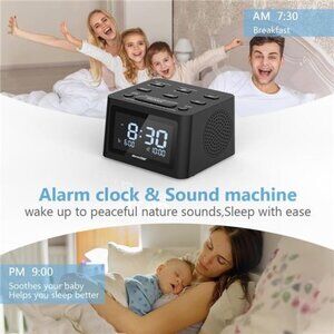 Dual Alarm Clock & Sleep Sound Machine, USB Charger, 12 Soothing Sounds