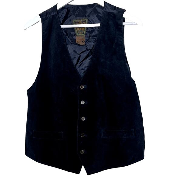 Dual Control VTG Suede Leather Vest Waistcoat Medium Black Western Biker Cowboy