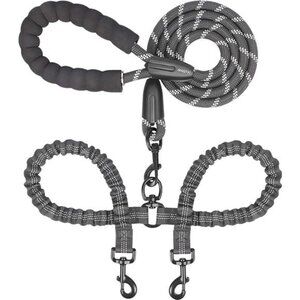 Dual Dog Leash - 360° Swivel, No Tangle Walking Leash with Shock Absorbing Bunge