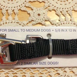 If you have two dogs of similar size, this changes any leash into a dual dog leash. From Petmate. Leash is new but cardboard holder has some scratches. Please note: For small to medium dogs only.