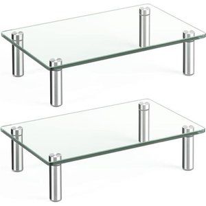 Dual Glass Monitor Stand Riser, 2 Pack Computer Monitor Riser, Clear Stand