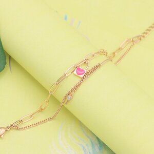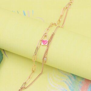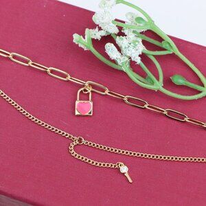 Elegant rose gold bracelet featuring a unique two-layer design. Adorned with a pink heart lock and delicate key charm, this bracelet adds charm to any look.