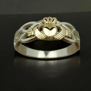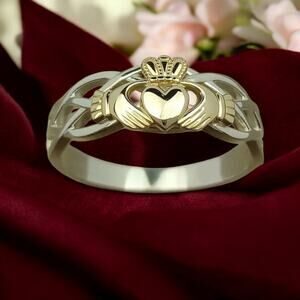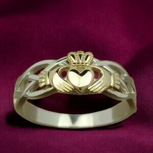 Dual Tone Celtic Claddagh Ring Gold Crown Heart Irish Wedding Band Size 6.5 New