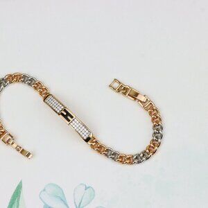 "Dual Tone Rose Gold Bracelet with Crystal 'H' Accent, XPBL0735