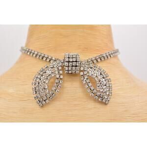 Duane Vintage Crystal Choker Bow Necklace Collar Rhinestone Sparkle 1960s Bin4B