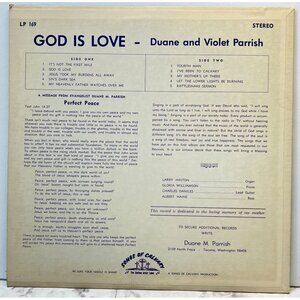 Duane and Violet Parrish God is Love Vinyl LP Christian Religious Grants Pass OR Songs of Calvary LP 169