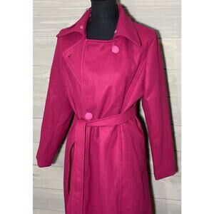 Beautiful brand new women’s dress coat. The color is a vibrant violet, absolutely beautiful. This coat is missing the fur collar, personally I would just remove the buttons and wear it like it is, see pics for the additional buttons. There are no tags so please go by measurements. I wear a large and this coat is just a bit too small for me.
