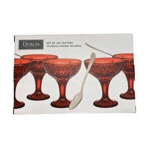 Dublin Collection Red Glass Dessert & Champagne Taster Set With Spoons