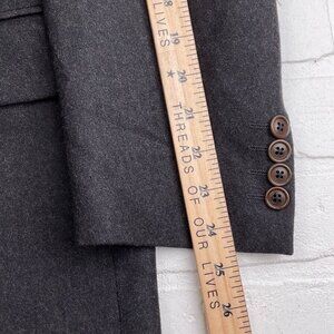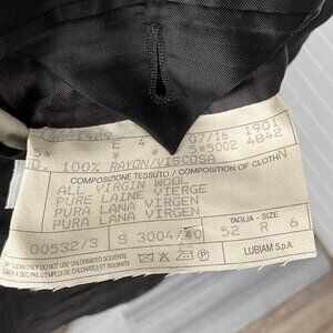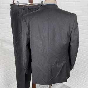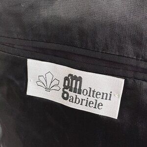 Elevate your style with this Molteni Gabriel Duca Di Mantova suit, perfect for any occasion. The black and gray flannel wool fabric is perfect for winter and fall, while the inner pockets and shoulder pads provide added structure. The jacket features a notch lapel style, four-button sleeve button style, and a single-breasted cut with a three-button front button style. The double-vented jacket vent style and pleated front type add a touch of elegance to this designer suit. The suit includes a regular-length jacket and straight leg style, with a waist size of 34 inches and a chest size of 42 inches. The suit is lined with viscose/rayon and should be dry cleaned only. This classic suit is perfect for parties, cocktails, or business events.