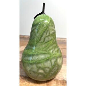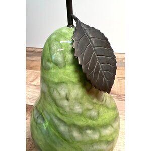 Ducceschi Hand-Carved Alabaster Pear Bookend With Metal Leaf Stem Made In Italy