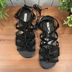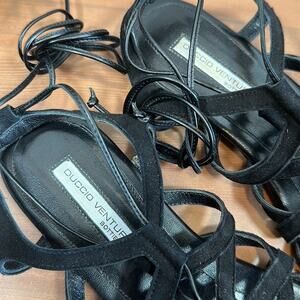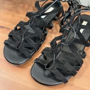 Duccio Venturi Black Suede Gladiator Lace Up Sandals Size 39.5