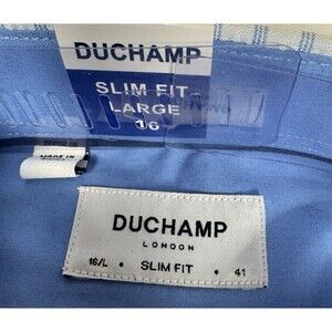 Duchamp London Mens Dress Shirt Size 16 Large Blue Shirt Slim Fit Cotton Stretch