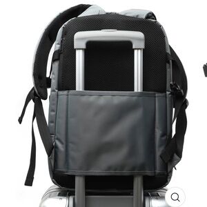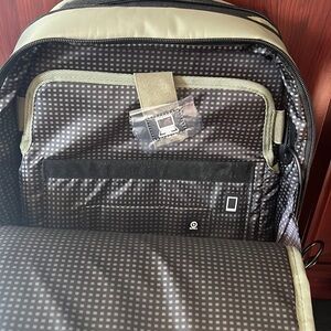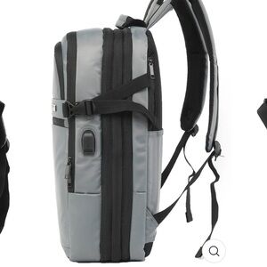 I’m always looking for a great backpack and this is one of the best that I have found. This is by Duchamp London and I think it’s fabulous. I’m showing pictures in gray only because they’re easier to see. This bag is greenish and does not have camo lining it has the lining that you can see in the last pictures. This features expandable zipper compartments, so it can be a very normal sized backpack and then totally become a suitcase. It’s made of tightly woven water repellent nylon and has very padded handles and tech friendly pockets. See photos for all the details, I can’t even list them all here. It does have a USB port and cable although you have to supply your own charging battery. The weight is only 2 pounds so for everything that it has it’s very lightweight. I love that there is a RFID security zipper at the back of the bag where you can hold your money, ID or passport. This way you don’t have to worry about anybody stealing it because that part is pressed up against your back. Brand new with tags, don’t wait on this one. Great for anyone!