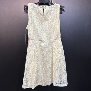 Duchess Lace Overlay, lined,bow-front,keyhole button back,sleeveless flowy dress