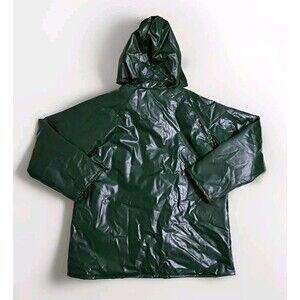 Duck Bay Raincoat PVC Rain Jacket Mens Medium Hooded Insulated Plaid Lined Green