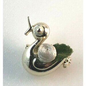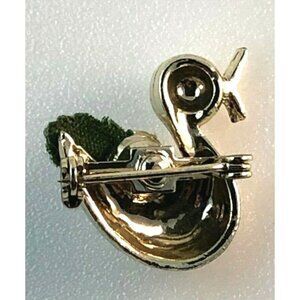 Duck Brooch Vintage Goldtone with Ribbon Pin