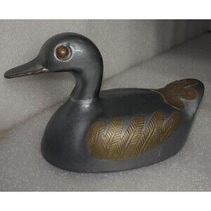 Design: Duck with detailed brass feather accents and round brass eyes