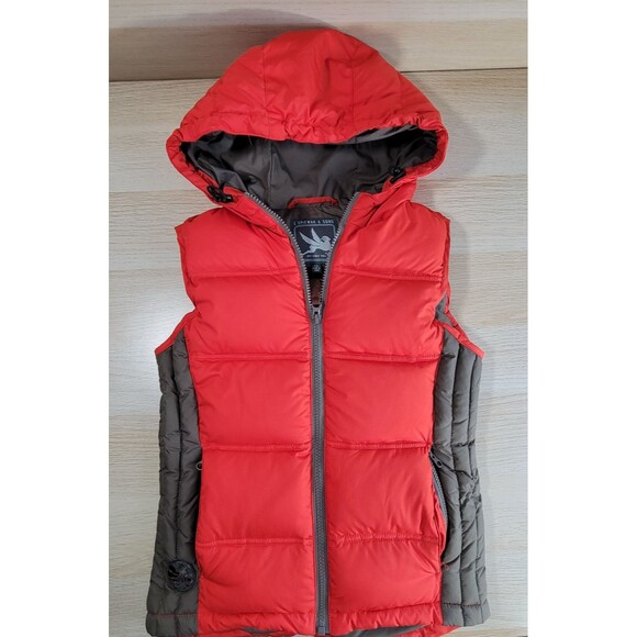 Duck Down Puffer Vest I. Spiewak & Sons Hooded Size XS Red Brown Full Zip Vtg