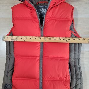 I. Spiewak & Sons Hooded Duck Down Puffer Vest Red Brown Full Zip Vtg