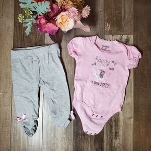 Duck Duck Goose Pink and Gray Matching Baby Girl Elephant Outfit Size 6-9M EUC