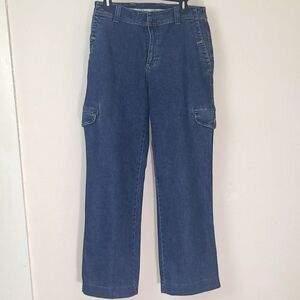 ✨ Duck Head Dark Wash Wide Leg Stretch Jeans Size 10 Vintage Utility Cargo Style