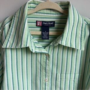 Duck Head Green Button Down Shirt Kids Shirt with Vertical Stripes
